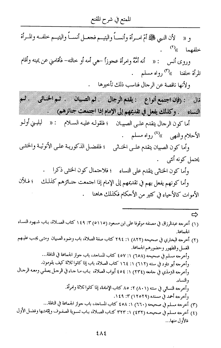 أما كون الرجال يتقدم على الصبيان؛ فلقوله عليه السلام: «ليليني أولو الأحلام والنهى» (¬3) رواه مسلم.