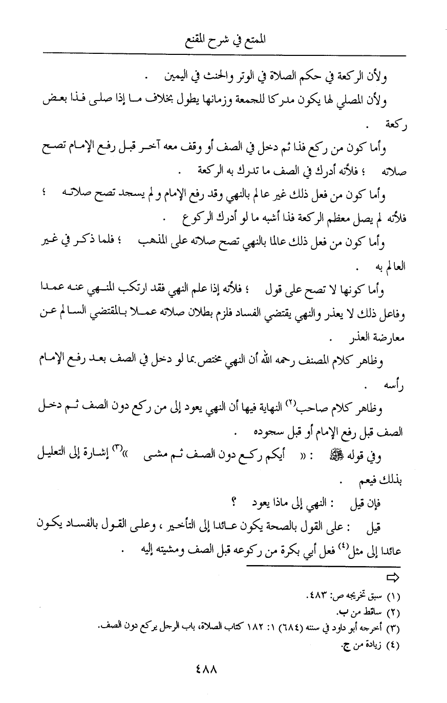 (¬2) أخرجه أبو داود في سننه (684) 1: 182 كتاب الصلاة، باب الرجل يركع دون الصف.
