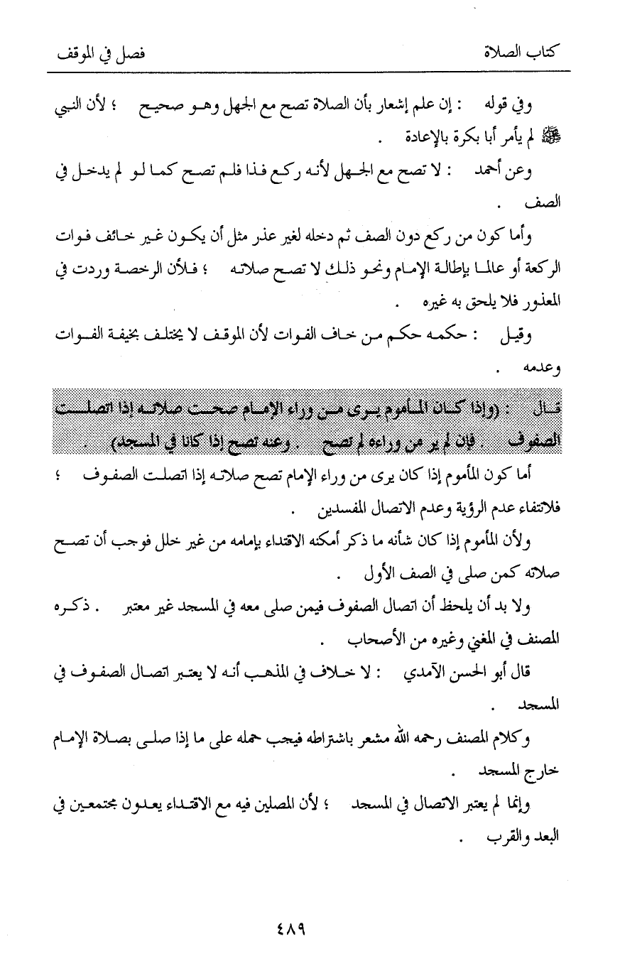 قال أبو الحسن الآمدي: لا خلاف في المذهب أنه لا يعتبر اتصال الصفوف في المسجد.