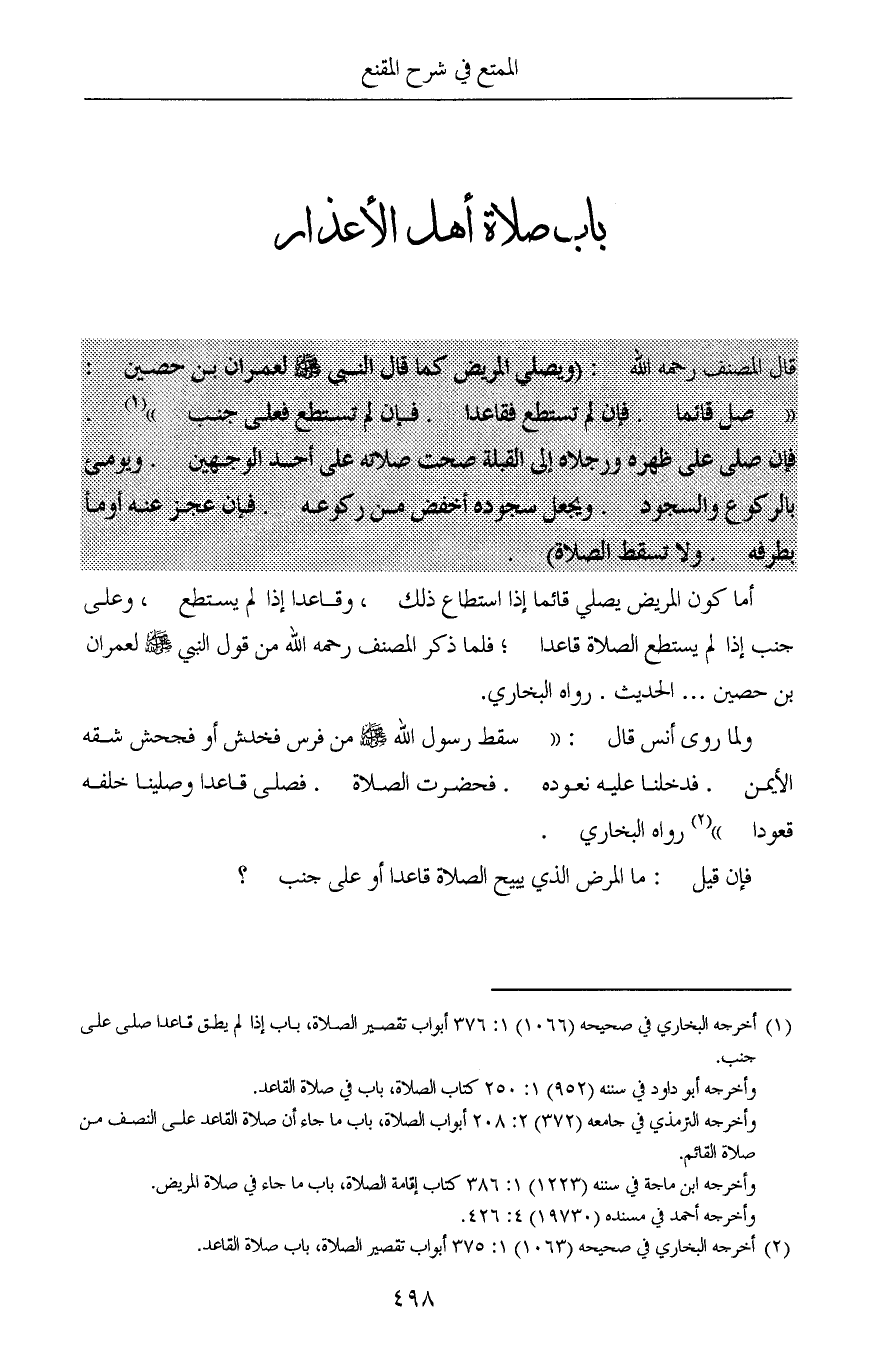 (¬2) أخرجه البخاري في صحيحه (1063) 1: 375 أبواب تقصير الصلاة، باب صلاة القاعد.