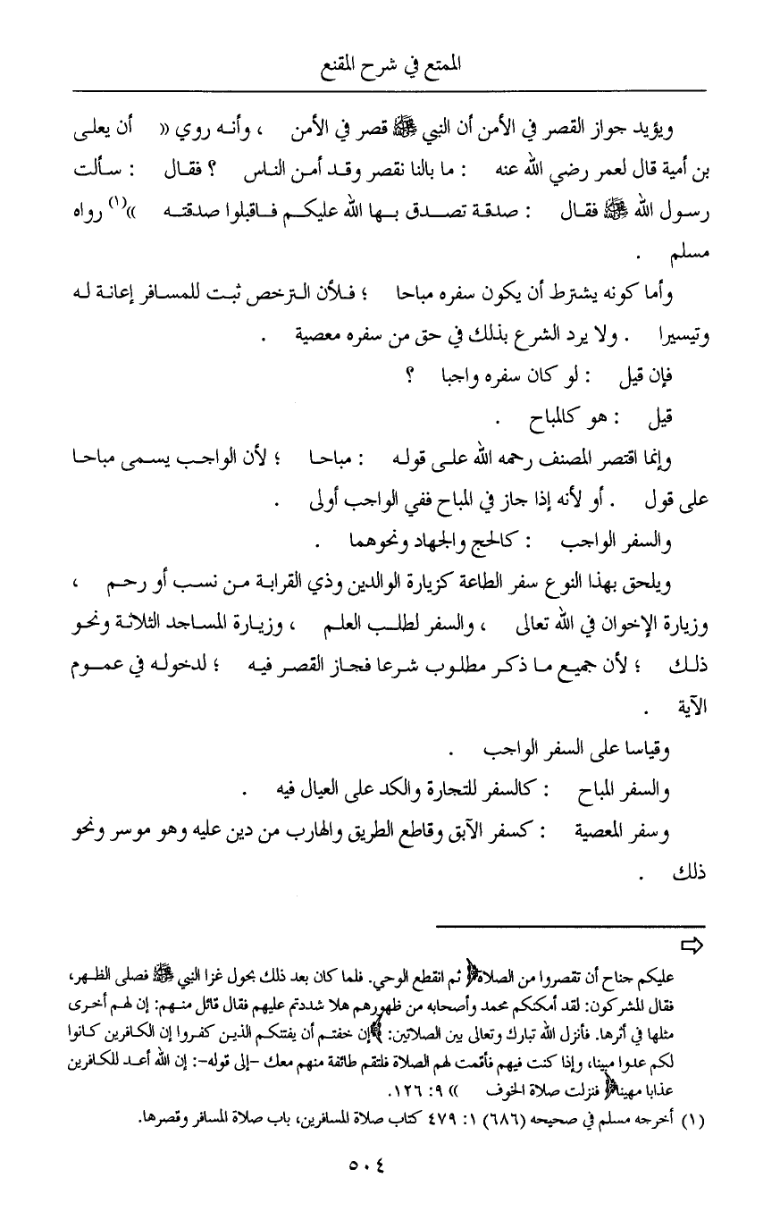(¬1) أخرجه مسلم في صحيحه (686) 1: 479 كتاب صلاة المسافرين، باب صلاة المسافر وقصرها.