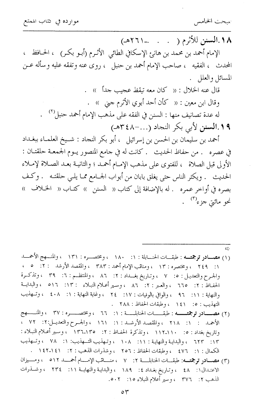 (¬1) مصادر ترجمته: طبقات الحنابلة: 1: 66، ومختصره: 37، والمنهج الأحمد: 1: 218، والمقصد الأرشد: 1: 161، والجرح والتعديل: 2: 72، وتاريخ بغداد: 5: 110 ـ 112، وتذكرة الحفاظ: 2: 135 ـ 136، وسير أعلام النبلاء: 13: 623، والبداية والنهاية: 11: 108، وتهذيب التهذيب: 1: 78، وتهذيب الكمال: 1: 476، وطبقات الحفاظ: 256، وشذرات الذهب: 2: 141 ـ 142.