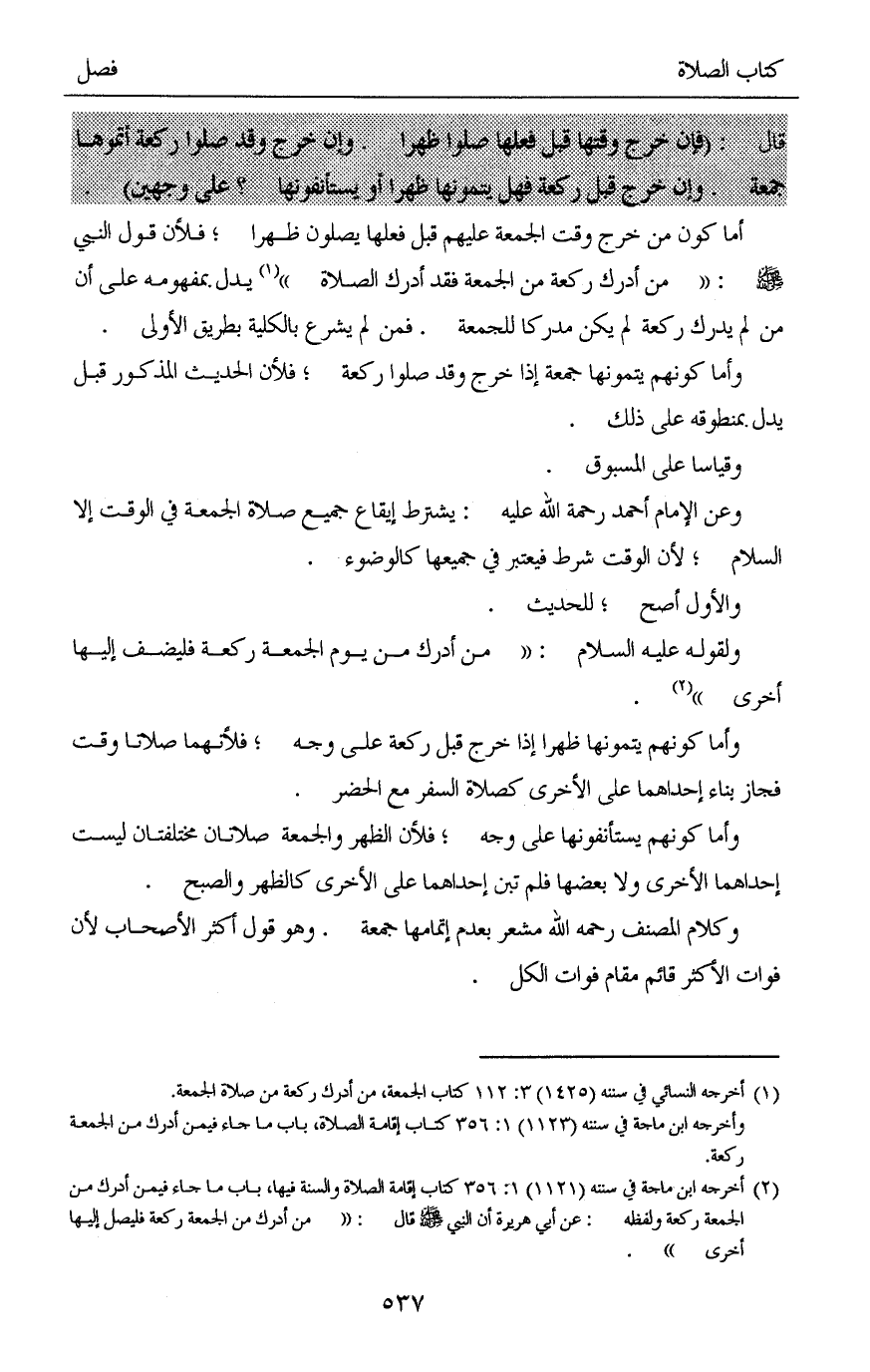 (¬1) أخرجه النسائي في سننه (1425) 3: 112 كتاب الجمعة، من أدرك ركعة من صلاة الجمعة.