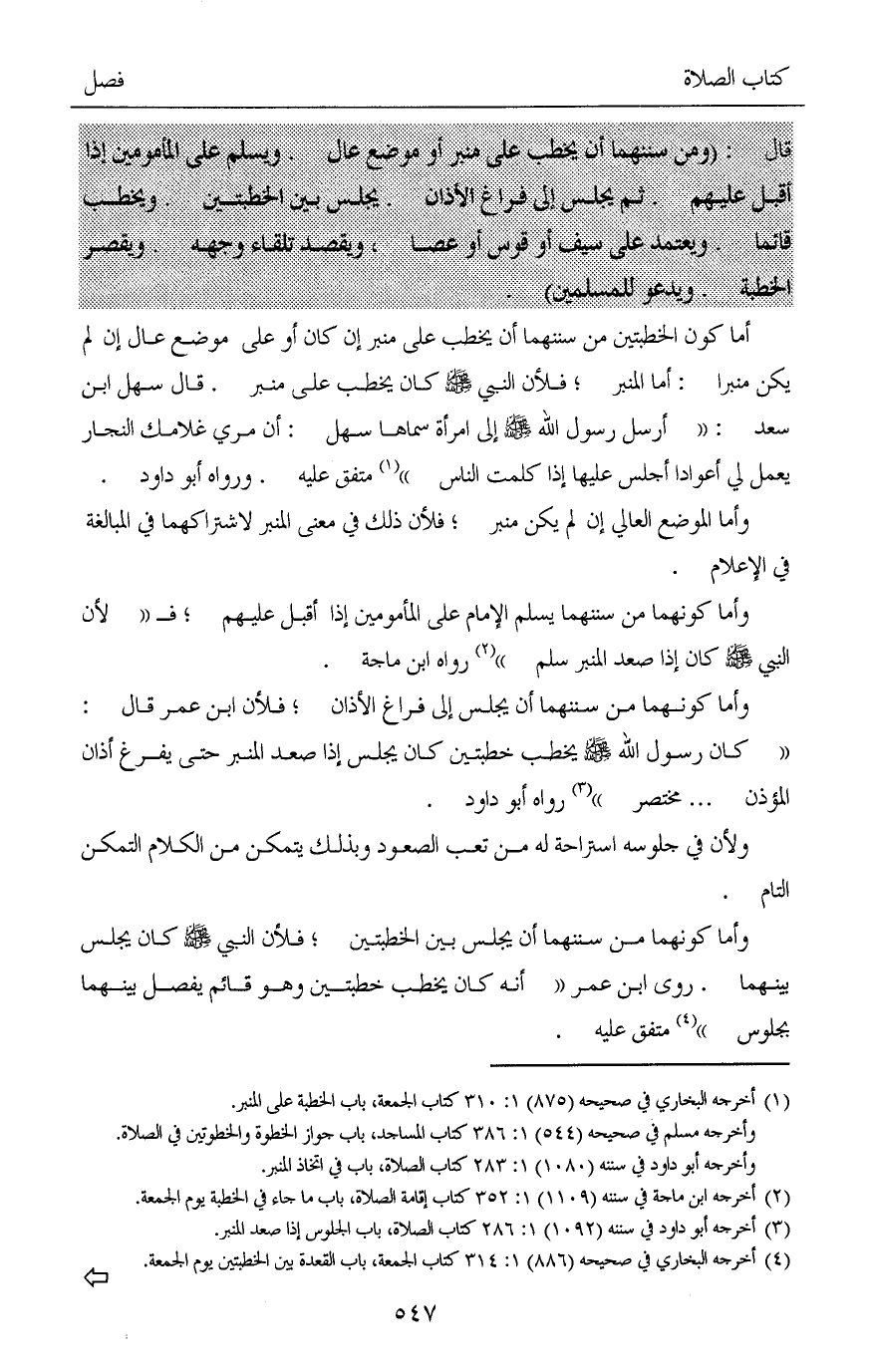 (¬1) أخرجه البخاري في صحيحه (875) 1: 310 كتاب الجمعة، باب الخطبة على المنبر.