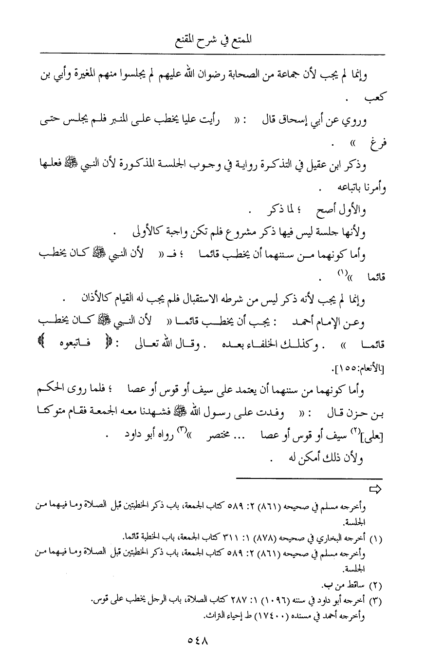 (¬3) أخرجه أبو داود في سننه (1096) 1: 287 كتاب الصلاة، باب الرجل يخطب على قوس.