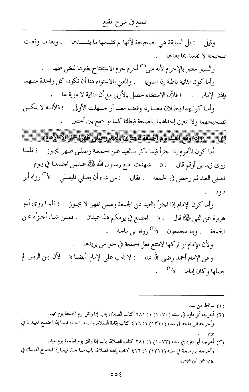(¬3) أخرجه أبو داود في سننه (1073) 1: 281 كتاب الصلاة، باب إذا وافق يوم الجمعة يوم عيد.