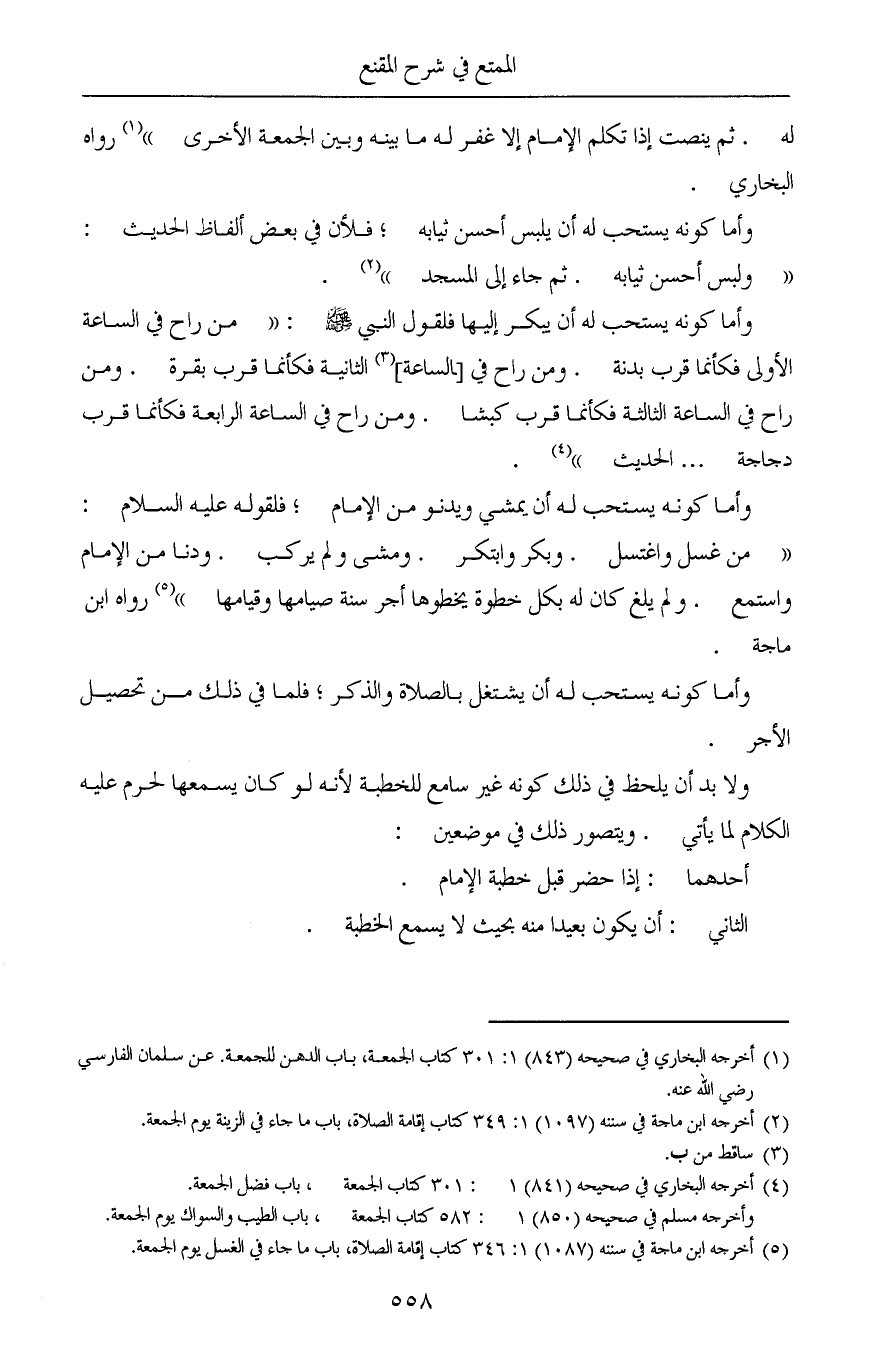 (¬1) أخرجه البخاري في صحيحه (843) 1: 301 كتاب الجمعة، باب الدهن للجمعة. عن سلمان الفارسي رضي الله عنه.