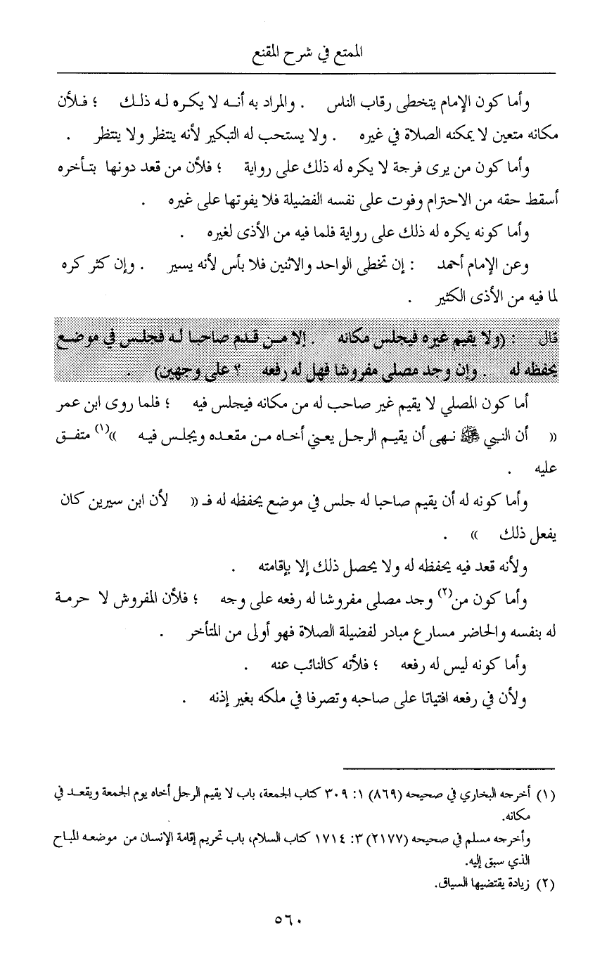 (¬1) أخرجه البخاري في صحيحه (869) 1: 309 كتاب الجمعة، باب لا يقيم الرجل أخاه يوم الجمعة ويقعد في مكانه.