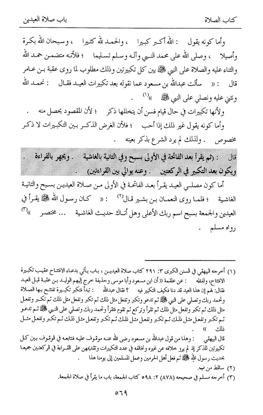(¬1) أخرجه البيهقي في السنن الكبرى 3: 291 كتاب صلاة العيدين، باب يأتي بدعاء الافتتاح عقيب تكبيرة الافتتاح، ولفظه: عن علقمة «أن ابن مسعود وأبا موسى وحذيفة خرج إليهم الوليد بن عقبة قبل العيد فقال: لهم إن هذا العيد قد دنا فكيف التكبير فيه؟ فقال عبدالله: تبدأ فتكبر تكبيرة تفتتح بها الصلاة وتحمد ربك وتصلي على النبي صلى الله عليه وسلم ثم تدعو وتكبر وتفعل مثل ذلك ثم تكبر وتفعل مثل ذلك ثم تكبر وتفعل مثل ذلك ثم تكبر وتفعل مثل ذلك ثم تقرأ وتركع ثم تقوم فتقرأ وتحمد ربك وتصلي على النبي صلى الله عليه وسلم ثم تدعو ثم تكبر وتفعل مثل ذلك ثم تكبر وتفعل مثل ذلك ثم تكبر وتفعل مثل ذلك ثم تكبر وتفعل مثل ذلك».