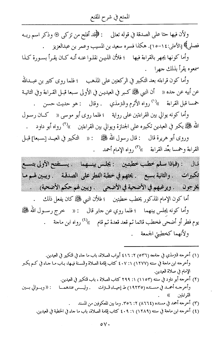 (¬4) أخرجه ابن ماجة في سننه (1289) 1: 409 كتاب إقامة الصلاة، باب ما جاء في الخطبة في العيدين.