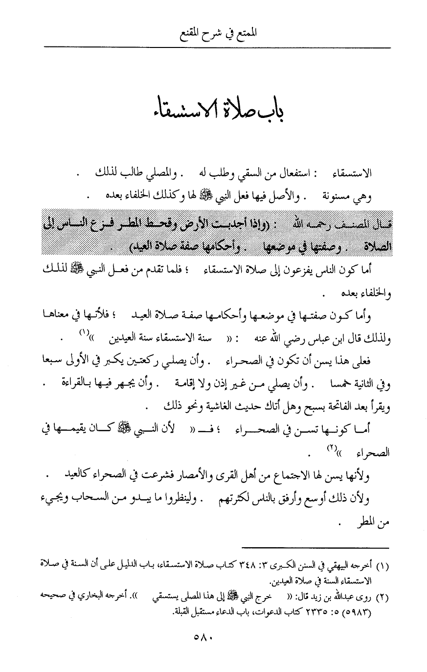 (¬2) روى عبدالله بن زيد قال: «خرج النبي صلى الله عليه وسلم إلى هذا المصلى يستسقي». أخرجه البخاري في صحيحه (5983) 5: 2335 كتاب الدعوات، باب الدعاء مستقبل القبلة.