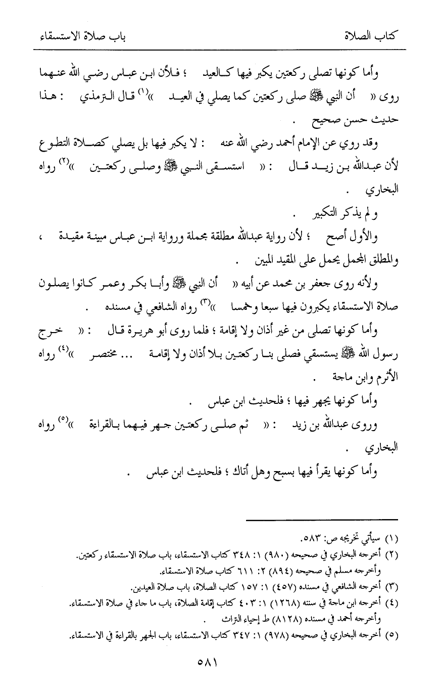 (¬2) أخرجه البخاري في صحيحه (980) 1: 348 كتاب الاستسقاء، باب صلاة الاستسقاء ركعتين.