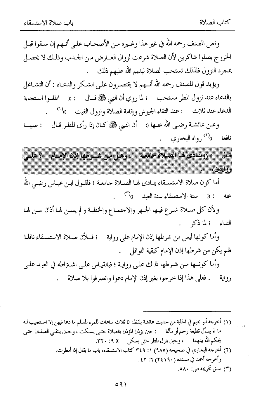 أما كون صلاة الاستسقاء ينادى لها الصلاة جامعة؛ فلقول ابن عباس رضي الله عنه: «سنة الاستسقاء سنة العيد» (¬3).