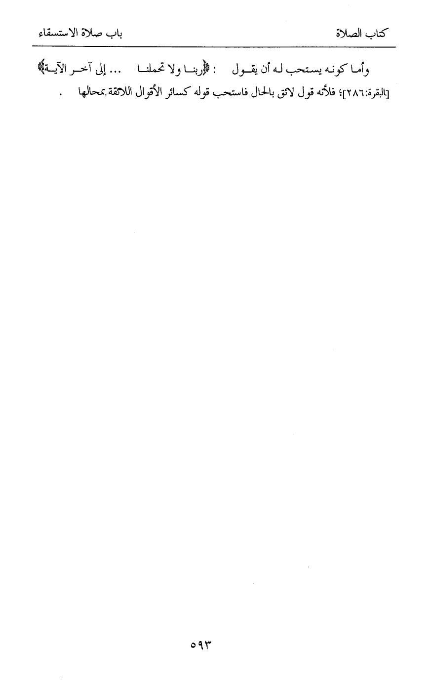 وأما كونه يستحب له أن يقول: {ربنا ولا تحملنا ... إلى آخر الآية} [البقرة: 286]؛ فلأنه قول لائق بالحال فاستحب قوله كسائر الأقوال اللائقة بمحالّها.