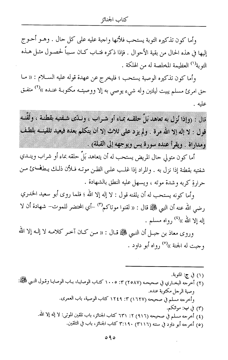 (¬5) أخرجه أبو داود في سننه (3116) 3: 190 كتاب الجنائز، باب في التلقين.