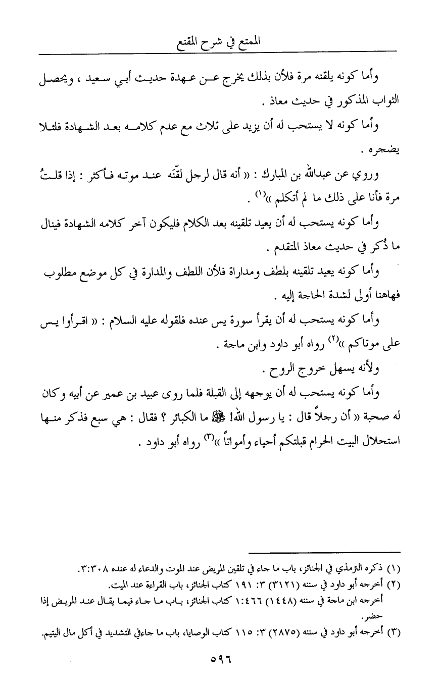 وروي عن عبدالله بن المبارك: «أنه قال لرجل لقّنَه عند موته فأكثر: إذا قلتُ مرة فأنا على ذلك ما لم أتكلم» (¬1).