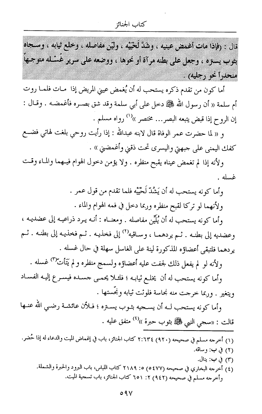 (¬1) أخرجه مسلم في صحيحه (920) 2: 634 كتاب الجنائز، باب في إغماض الميت والدعاء له إذا حُضر.