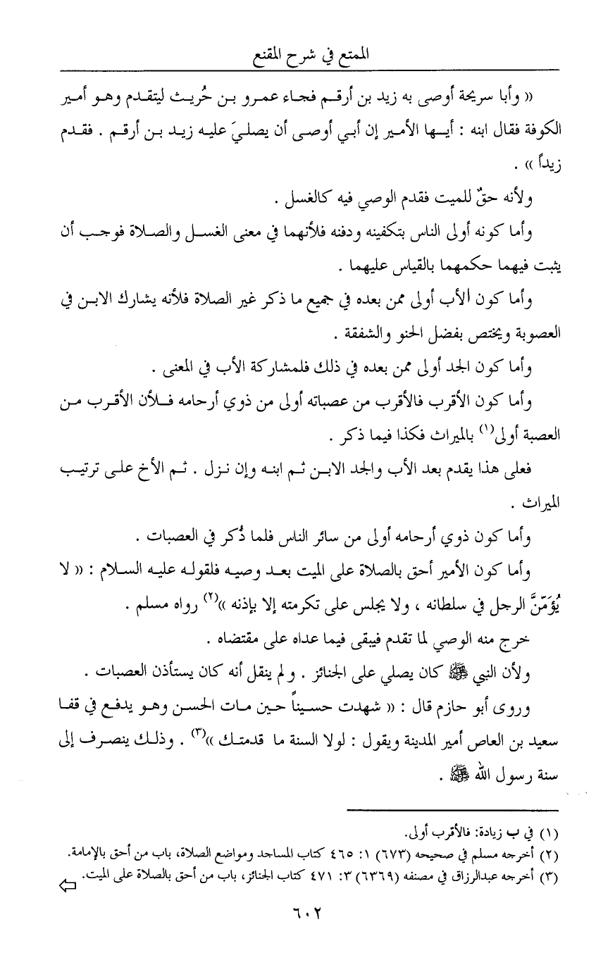(¬3) أخرجه عبدالرزاق في مصنفه (6369) 3: 471 كتاب الجنائز، باب من أحق بالصلاة على الميت.