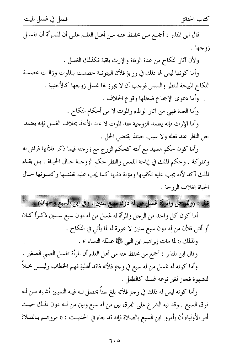 وأما كونه له غسل من له سبع في وجهٍ فلأنه فاقد أهليةِ فهم الخطاب وليس محلاً للشهوة فجاز لغير نوعه غسله كالطفل.