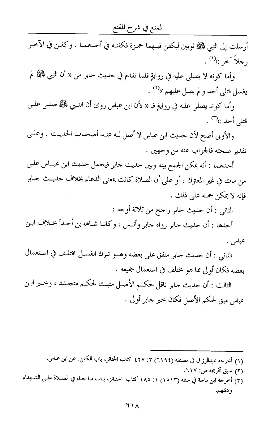 (¬3) أخرجه ابن ماجة في سننه (1513) 1: 485 كتاب الجنائز، باب ما جاء في الصلاة على الشهداء ودفنهم.