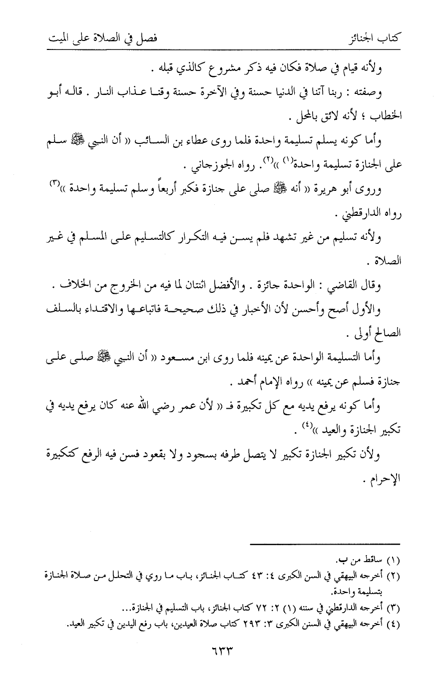 (¬3) أخرجه الدارقطني في سننه (1) 2: 72 كتاب الجنائز، باب التسليم في الجنازة ...