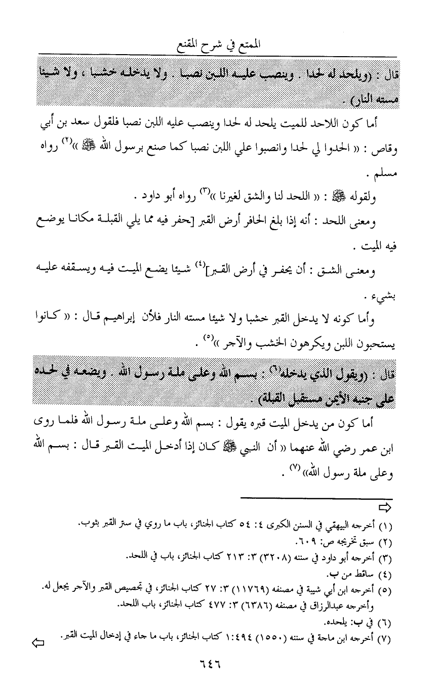 (¬6) أخرجه ابن ماجة في سننه (1550) 1: 494 كتاب الجنائز، باب ما جاء في إدخال الميت القبر.