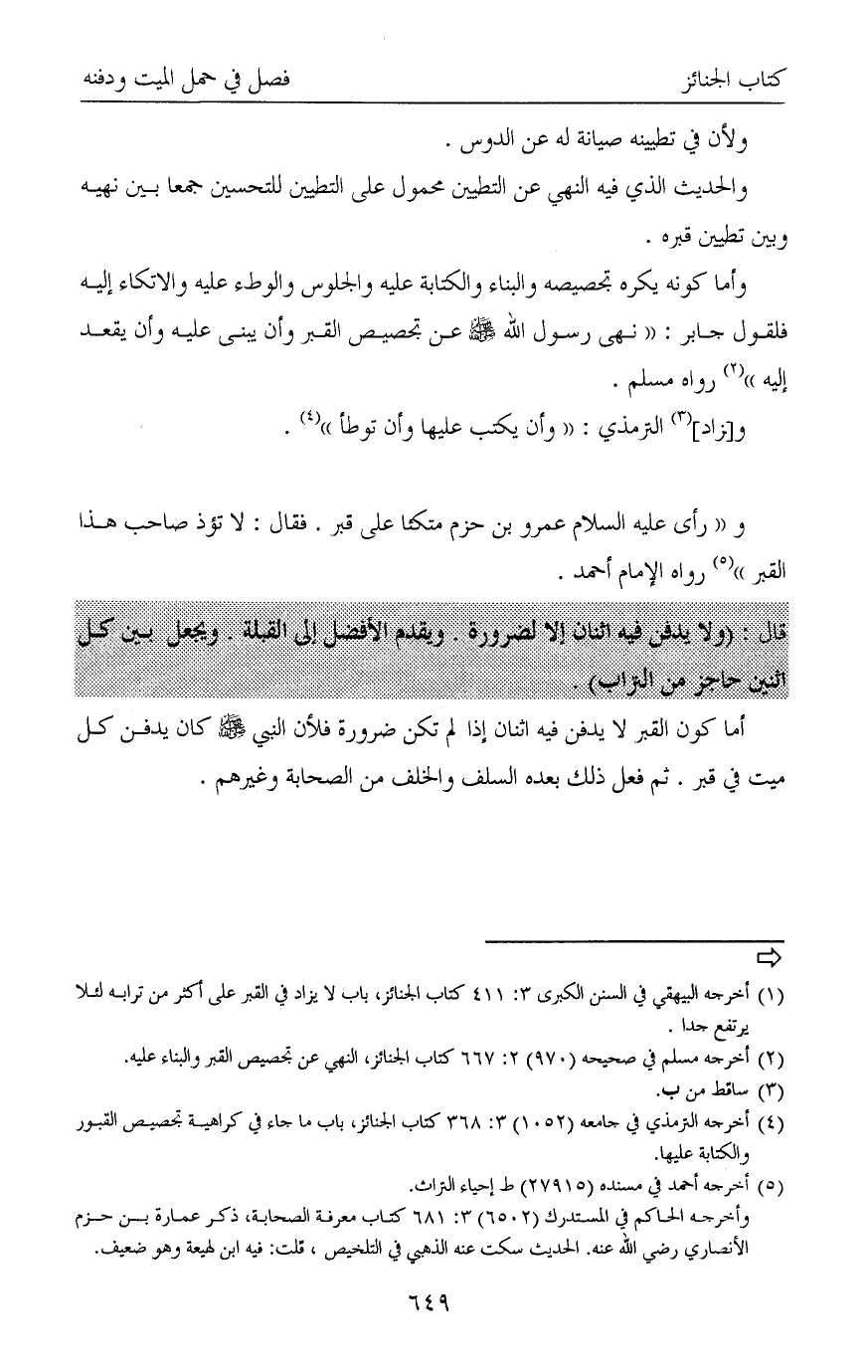 (¬3) أخرجه الترمذي في جامعه (1052) 3: 368 كتاب الجنائز، باب ما جاء في كراهية تجصيص القبور والكتابة عليها.