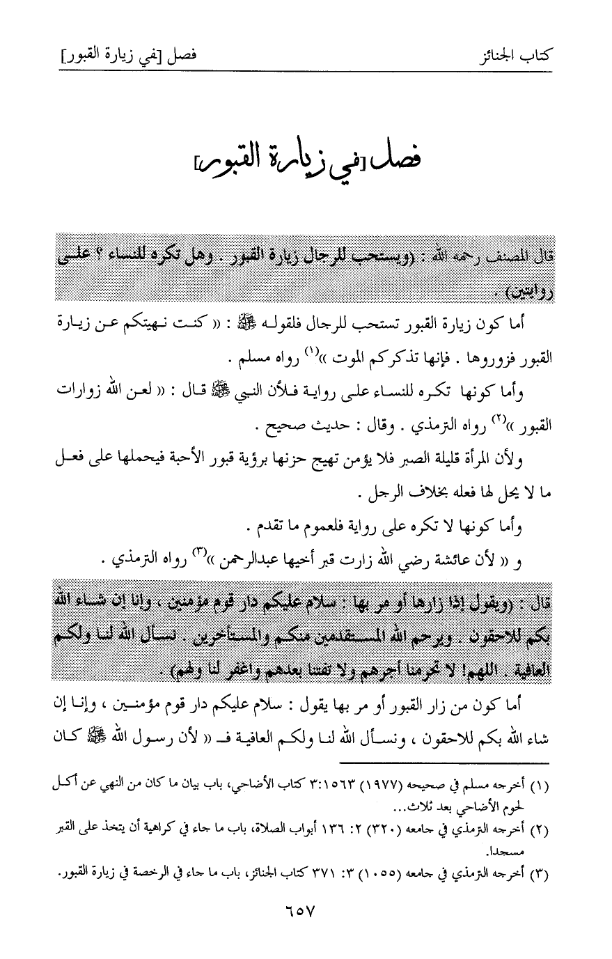 (¬3) أخرجه الترمذي في جامعه (1055) 3: 371 كتاب الجنائز، باب ما جاء في الرخصة في زيارة القبور.