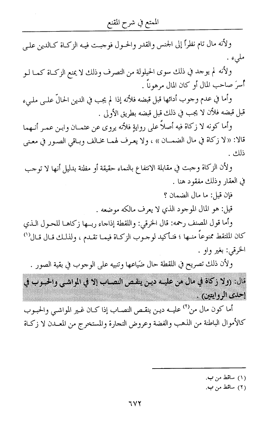أما كون مال من (¬2) عليه دين ينقص النصاب إذا كان غير المواشي والحبوب كالأموال الباطنة من الذهب والفضة وعروض التجارة والمستخرج من المعدن لا زكاة
