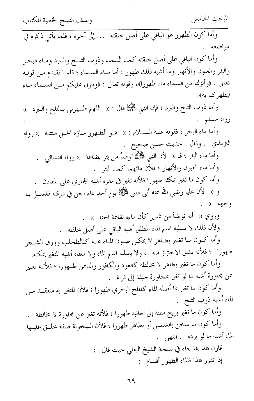 وأما كون الطهور هو الباقي على أصل خلقته ... إلى آخره؛ فلما يأتي ذكره في مواضعه.