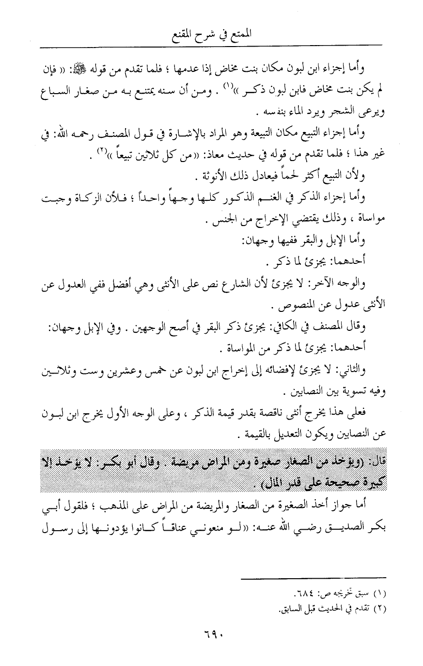 أما جواز أخذ الصغيرة من الصغار والمريضة من المراض على المذهب؛ فلقول أبي بكر الصديق رضي الله عنه: «لو منعوني عناقاً كانوا يؤدونها إلى رسول
