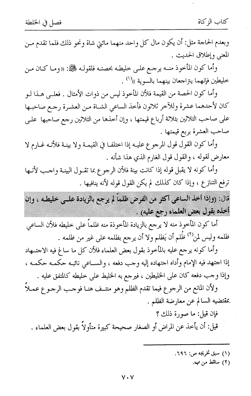 أما كون المأخوذ منه لا يرجع بالزيادة المأخوذة منه ظلماً على خليطه فلأن الساعي ظلمه وليس لمن (¬2) ظُلم أن يَظلم ولا أن يرجع بظلمه على غير من ظلمه.