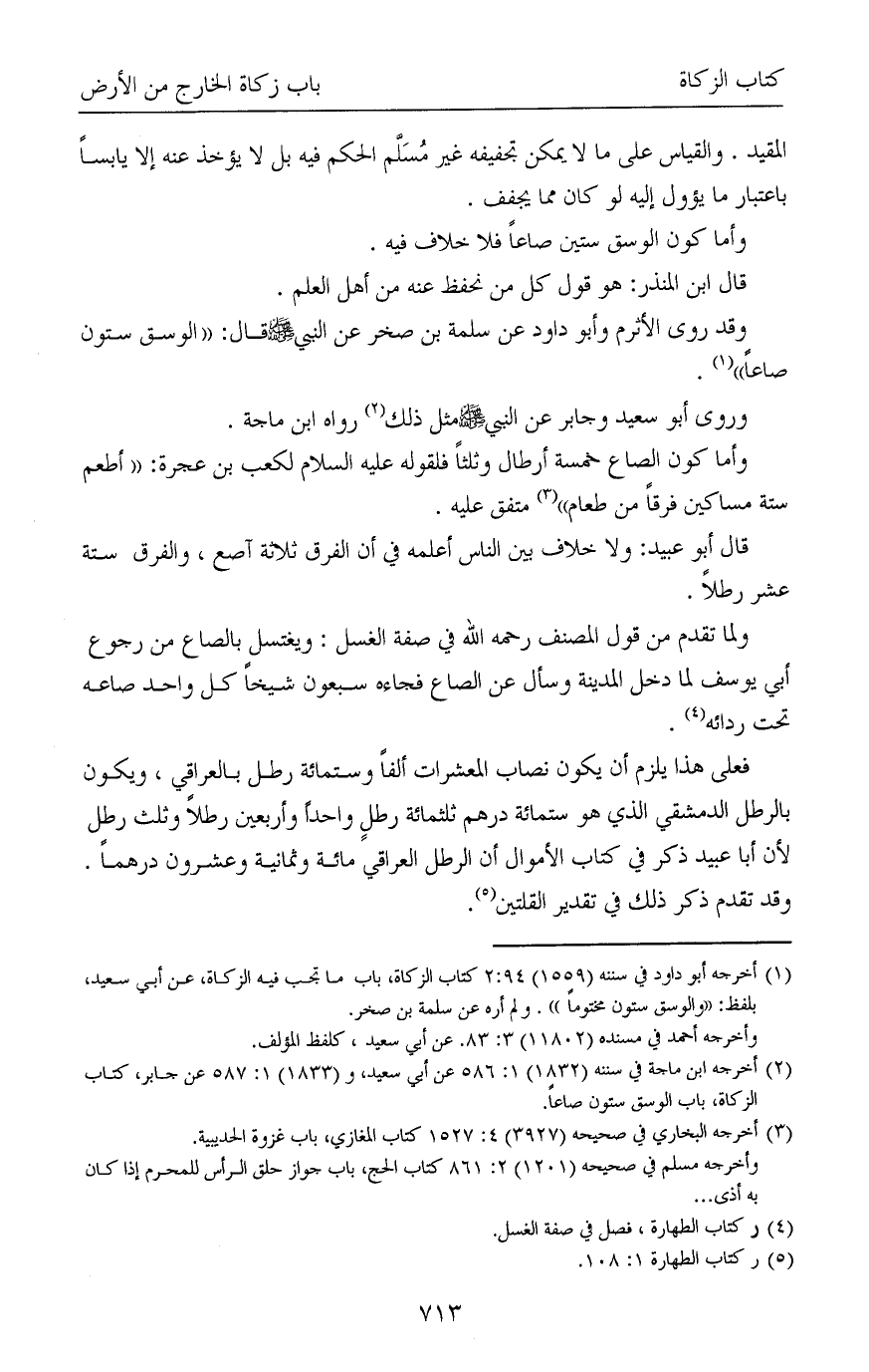 (¬2) أخرجه ابن ماجة في سننه (1832) 1: 586 عن أبي سعيد، و (1833) 1: 587 عن جابر، كتاب الزكاة، باب الوسق ستون صاعاً.