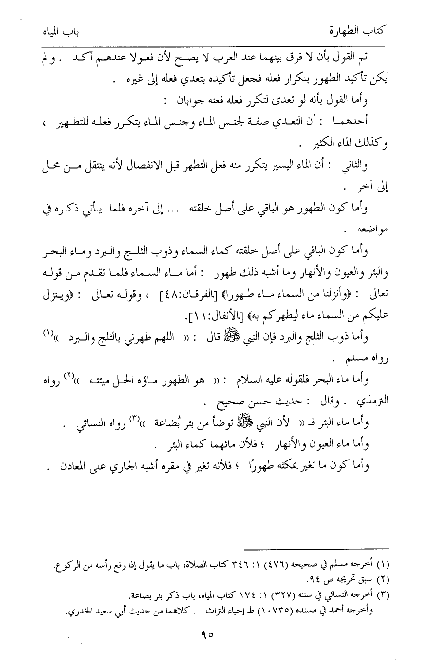 (¬3) أخرجه النسائي في سننه (327) 1: 174 كتاب المياه، باب ذكر بئر بضاعة.