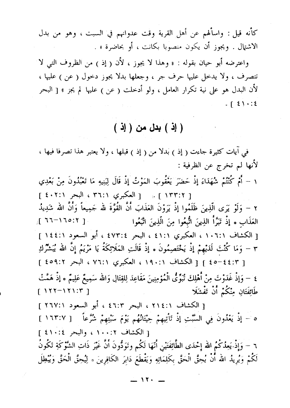 واعترضه أبو حيان بقوله: «وهذا لا يجوز، لأن (إذ) من الظروف التي لا تتصرف، ولا يدخل عليها حرف جر، وجعلها بدلاً يجوز دخول (عن) عليها، لأن البدل هو على نية تكرار العامل، ولو أدخلت (عن) عليها لم يجز» [البحر 4: 410].