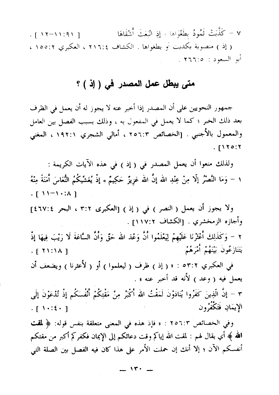 ولذلك منعوا أن يعمل المصدر في (إذ) في هذه الآيات الكريمة: