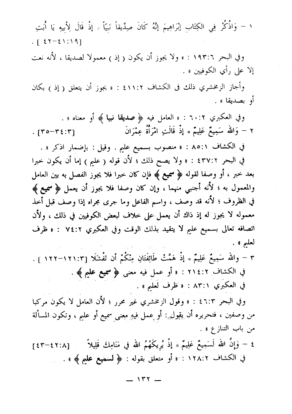 وأجاز الزمخشري ذلك في الكشاف 2: 411: «يجوز أن يتعلق (إذ) بكان أو بصديقا».