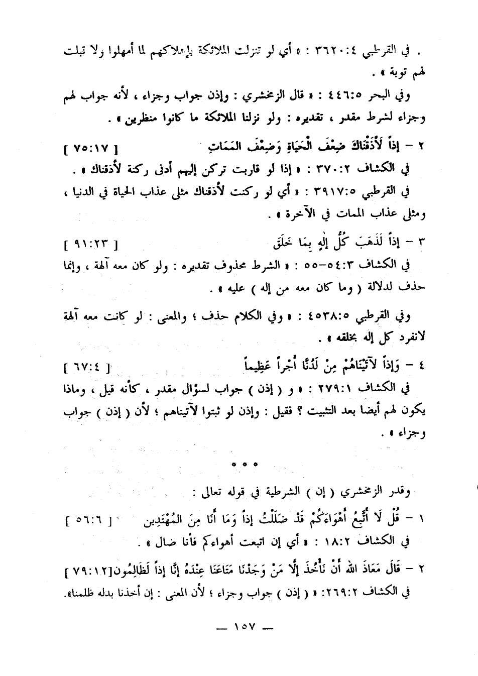 وفي البحر 5: 446: «قال الزمخشري: وإذن جواب وجزاء، لأنه جواب لهم وجزاء لشرط مقدر، تقديره: ولو نزلنا الملائكة ما كانوا منظرين».