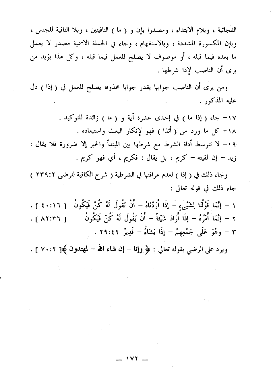 وجاء ذلك في (إذا) لعدم عراقتها في الشرطية (شرح الكافية للرضى 2: 239) جاء ذلك في قوله تعالى: