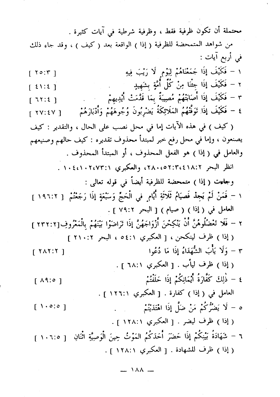 3 - {ولا يأب الشهداء إذا ما دعوا} [2: 282] (إذا) ظرف ليأب. [العكبري 1: 126].