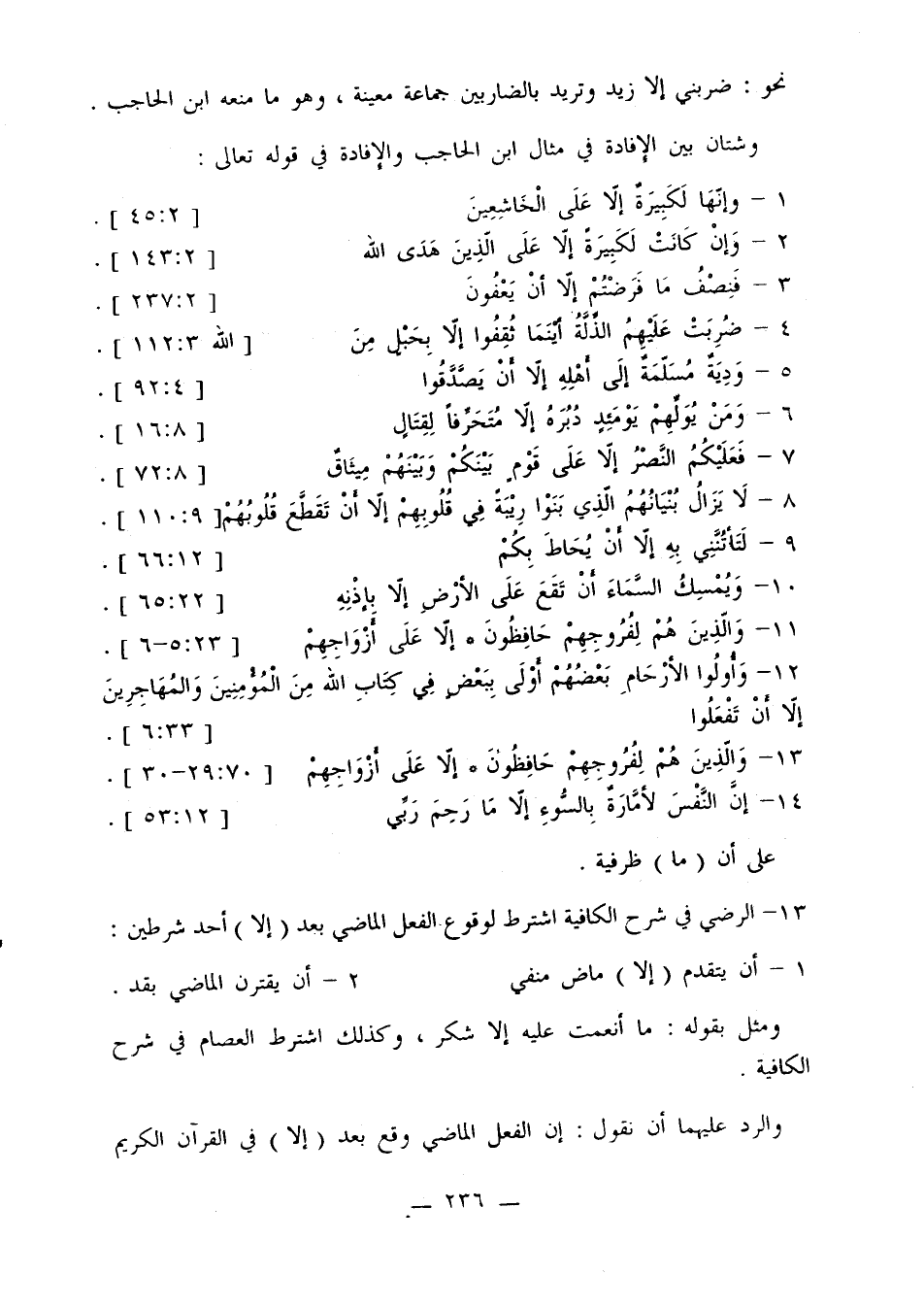 15 - الرضي في شرح الكافية اشترط لوقوع الفعل الماضي بعد (إلا) أحد شرطين: