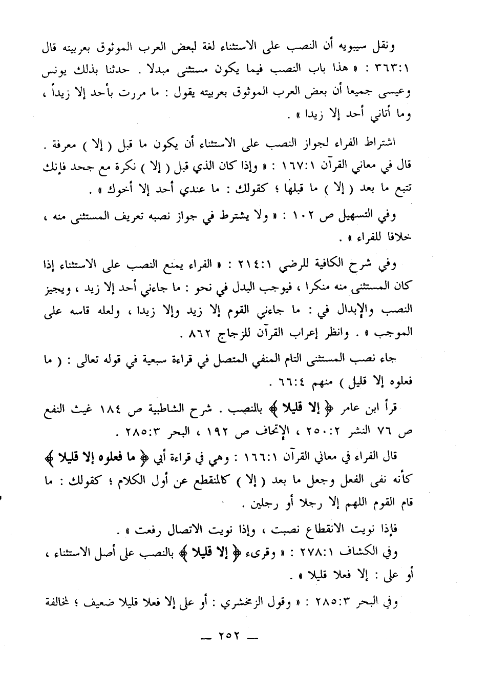 وفي الكشاف [1: 278]: «وقرئ {إلا قليلا} بالنصب على أصل الاستثناء، أو على: إلا فعلا قليلا».
