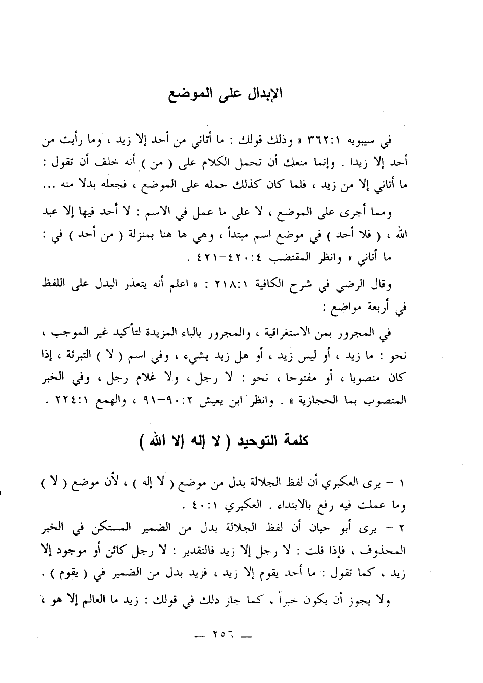 1 - يرى العكبري أن لفظ الجلالة بدل من موضع (لا إله)، لأن موضع (لا) وما عملت فيه رفع بالابتداء، العكبري 1: 40.