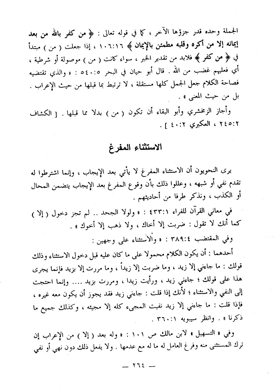 وفي المقتضب 4: 389 «والاستثناء على وجهين: