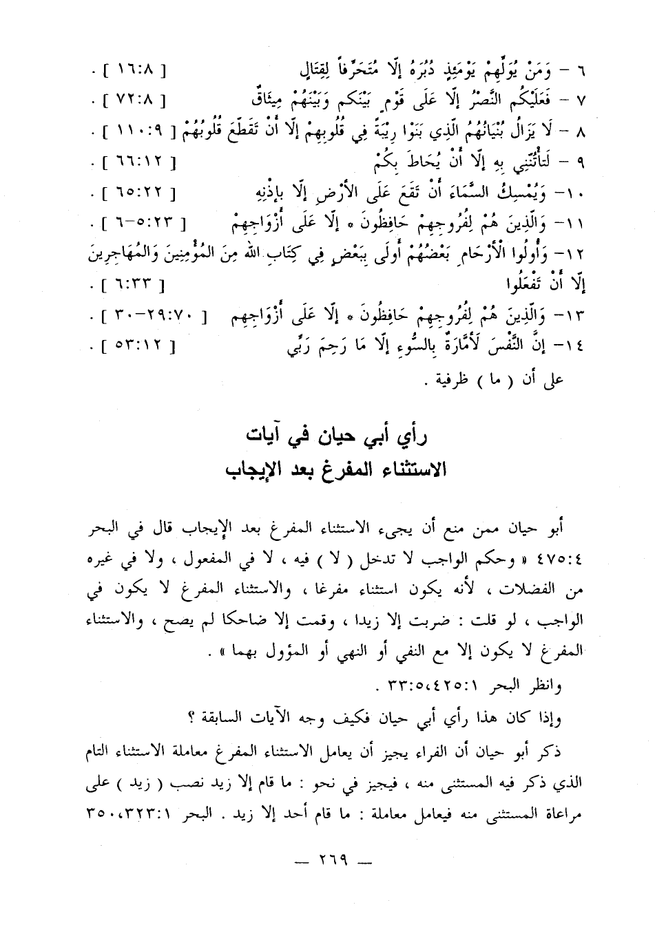 رأي أبي حيان في آيات الاستثناء المفرغ بعد الإيجاب