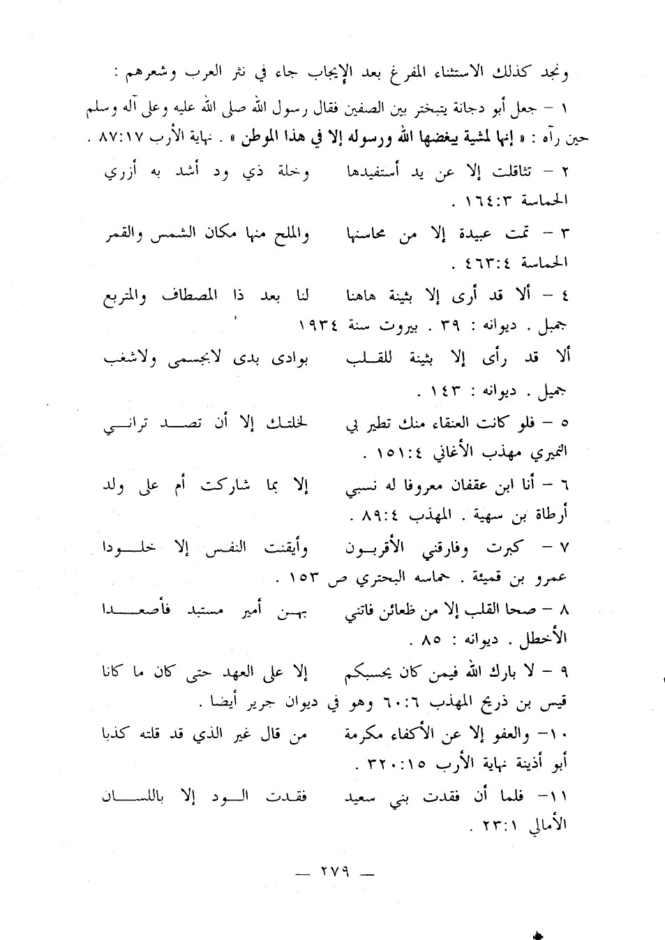 ونجد كذلك الاستثناء المفرغ بعد الإيجاب جاء في نثر العرب وشعرهم: