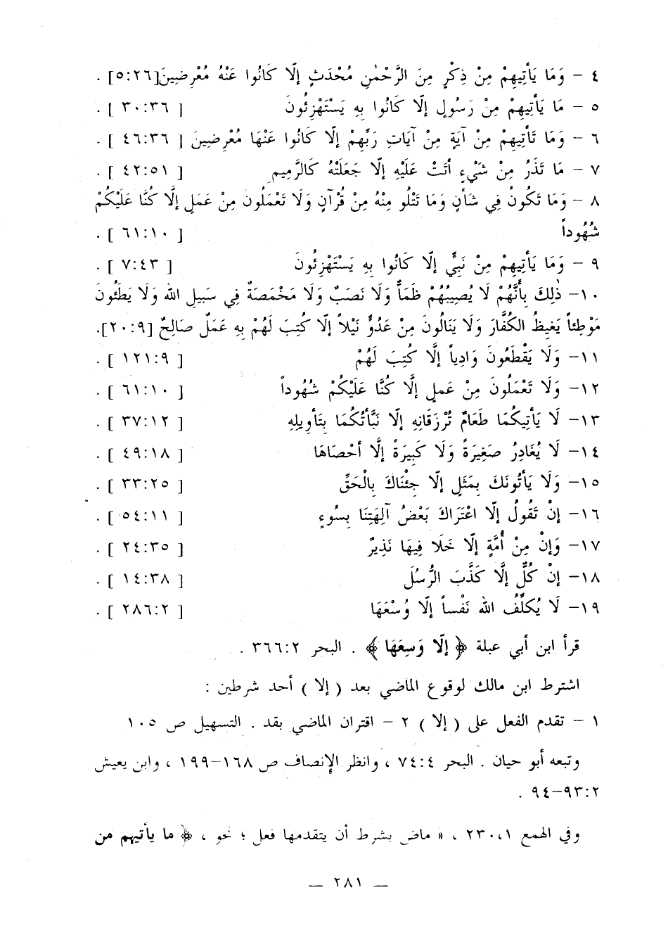 وفي الهمع 1، 230، «ماض بشرط أن يتقدمها فعل؛ نحو، {ما يأتيهم من