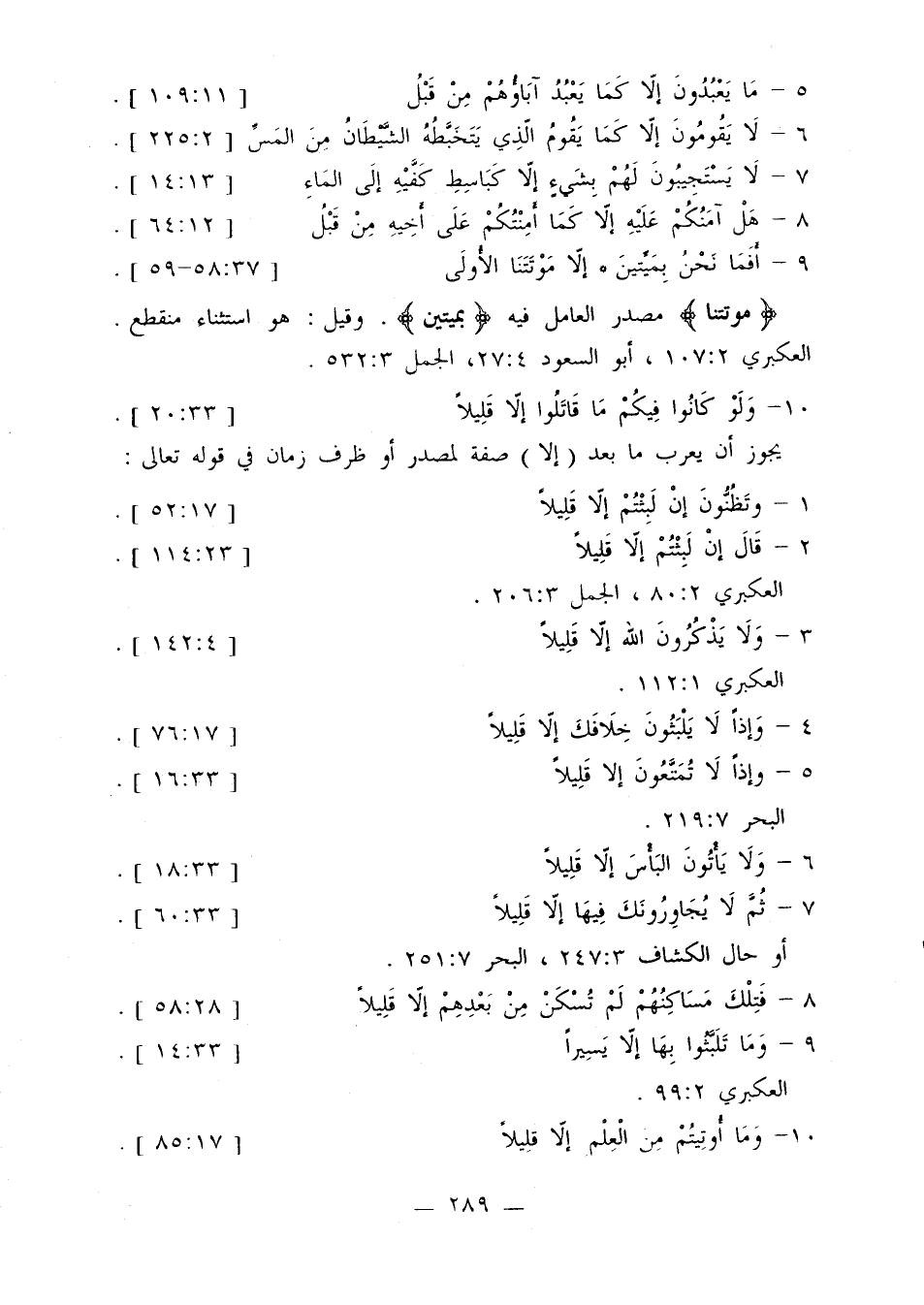 3 - {ولا يذكرون الله إلا قليلا} [4: 142]. العكبري 1: 112.