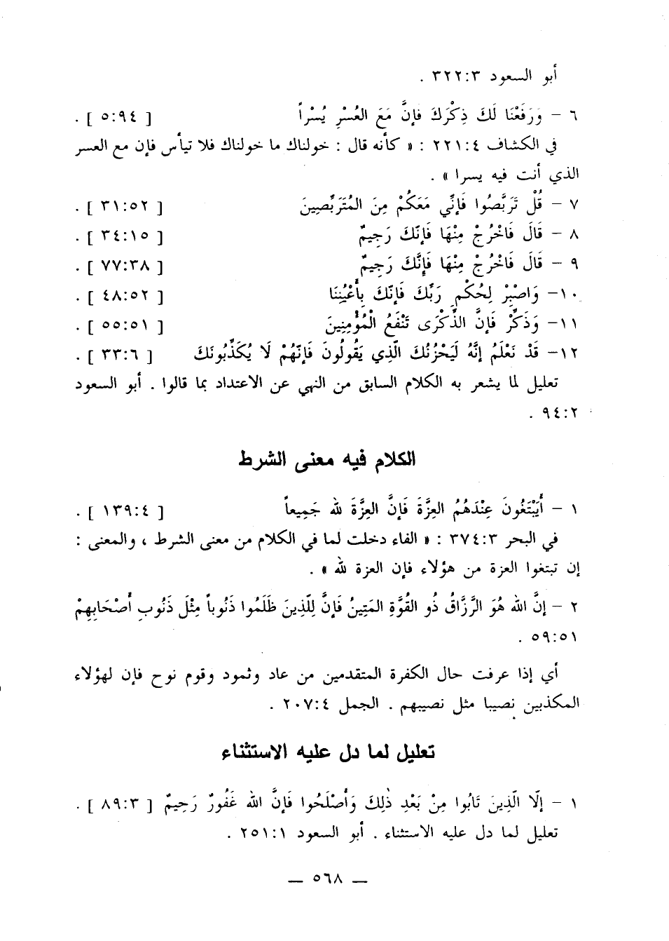 في الكشاف 4: 221: «كأنه قال: خولناك ما خولناك فلا تيأس فإن مع العسر الذي أنت فيه يسرا}.