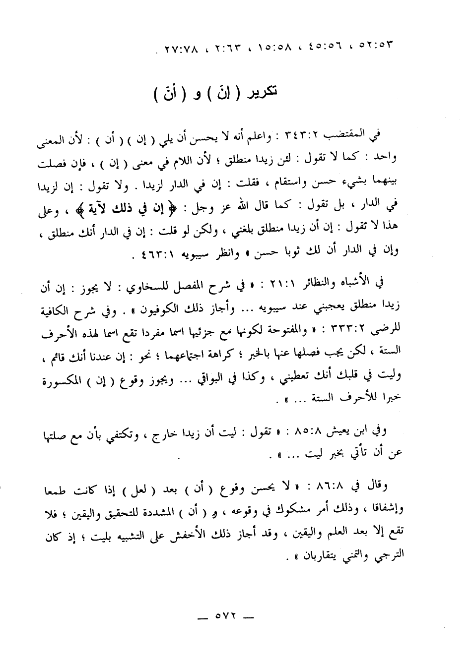 في المقتضب 2: 343: واعلم أنه لا يحسن أن يلي [إن] [أن]: لأن المعنى واحد: كما لا تقول: لئن زيدا منطلق؛ لأن اللام في معنى [إن]، فإن فصلت بينهما بشيء حسن واستقام، فقلت: إن في الدار لزيدا. ولا تقول: إن لزيدا في الدار، بل تقول: كما قال الله عز وجل: {إن في ذلك لآية}، وعلى هذا لا تقول: إن أن زيدا منطلق بلغني، ولكن لو قلت: إن في الدار أنك منطلق، وإن في الدار أن لك ثوبا حسن» وانظر سيبويه 1: 463.